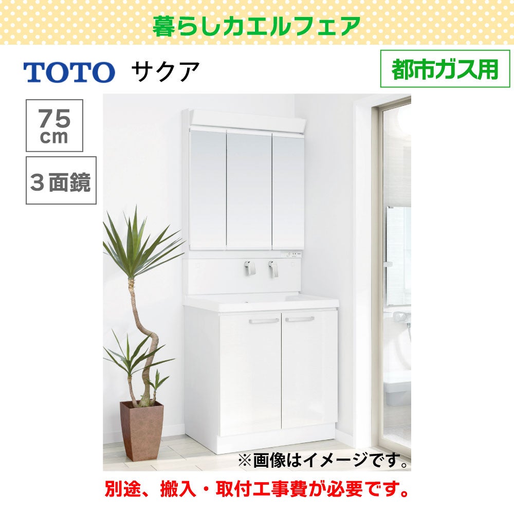 他の画像を見る 商品番号 L61301 【TOTO】洗面化粧台 (サクア) 都市ガス限定 販売価格 ¥ 266,000 税込 申し込み開始前です。 販売期間 2026/05/16 9:00 〜 2026/06/30 17:00