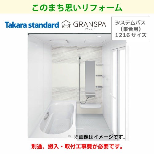 タカラスタンダードの集合用システムバス「グランスパ」1216サイズは、マンションや集合住宅に最適なコンパクト設計で快適な入浴空間を実現。高品位ホーロー素材を採用し、傷に強く、汚れが落ちやすいのでお掃除も簡単。優れた断熱性能でお湯が冷めにくく、省エネ効果で光熱費も抑えられます。