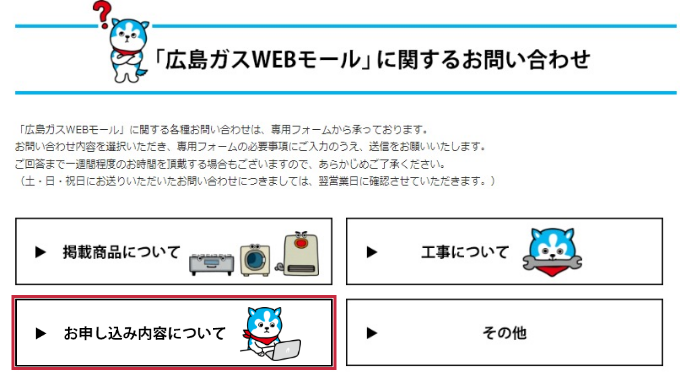 広島ガスWEBモールでは、まずお申し込みいただいた商品のお見積りを販売店の担当者がさせていただき、その内容にご納得いただいた場合に販売店と正式に注文となります。お見積り希望の場合も安心してお申し込みください。