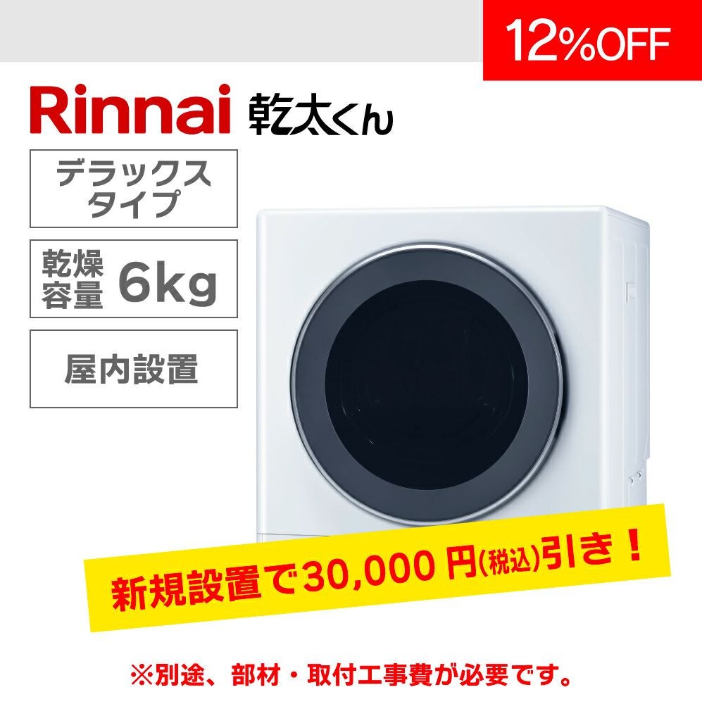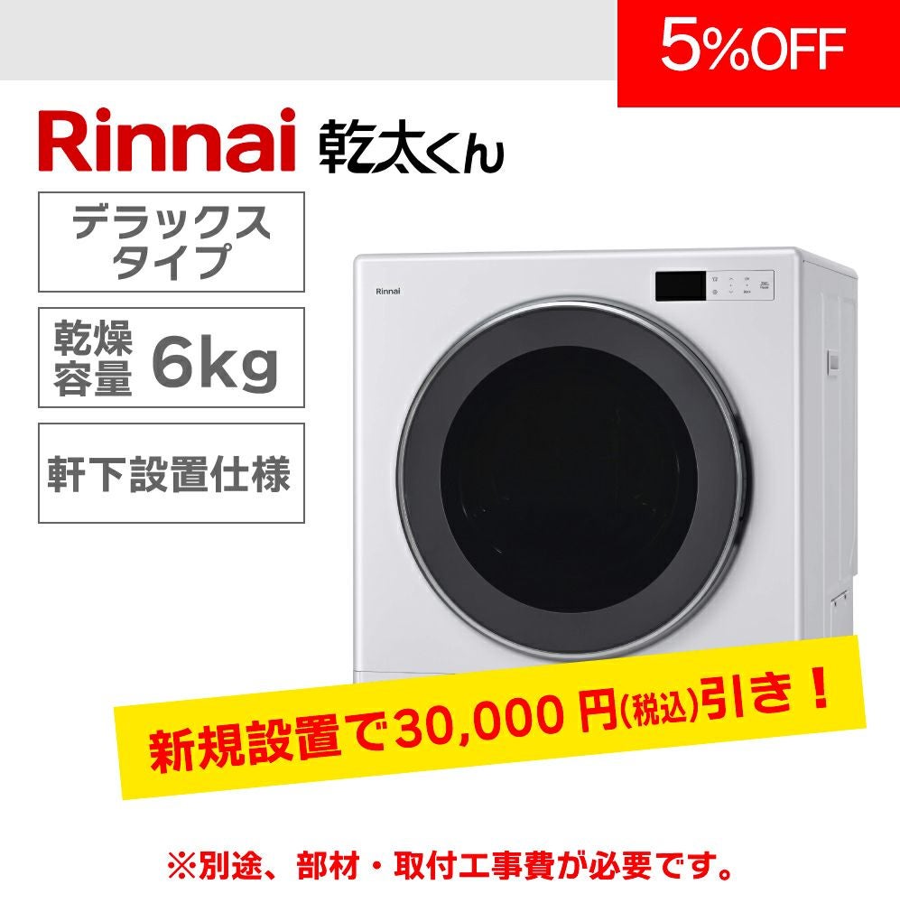 他の画像を見る 商品番号 W581 ガス衣類乾燥機 リンナイ「乾太くん」 乾燥容量6㎏(軒下設置モデル) 7年保証付(都市ガス限定) メーカー希望小売価格 ¥ 235,400 販売価格 ¥ 223,000 税込