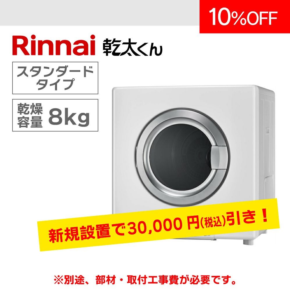 他の画像を見る 商品番号 G585 ガス衣類乾燥機 リンナイ「乾太くん」 乾燥容量9㎏ 都市ガス限定 7年保証付(都市ガス限定) メーカー希望小売価格 ¥ 246,400 販売価格 ¥ 214,600 税込 販売期間 2026/01/05 9:00 〜 2026/03/31 17:00