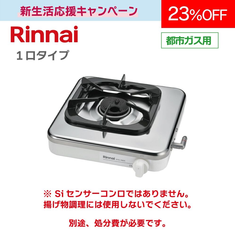他の画像を見る 商品番号 G5238 【1口タイプ】テーブルコンロ RTS-1NDC 都市ガス限定 7年保証付 メーカー希望小売価格 ¥ 9,900 販売価格 ¥ 7,600 税込 販売期間 2026/01/05 9:00 〜 2026/03/31 17:00