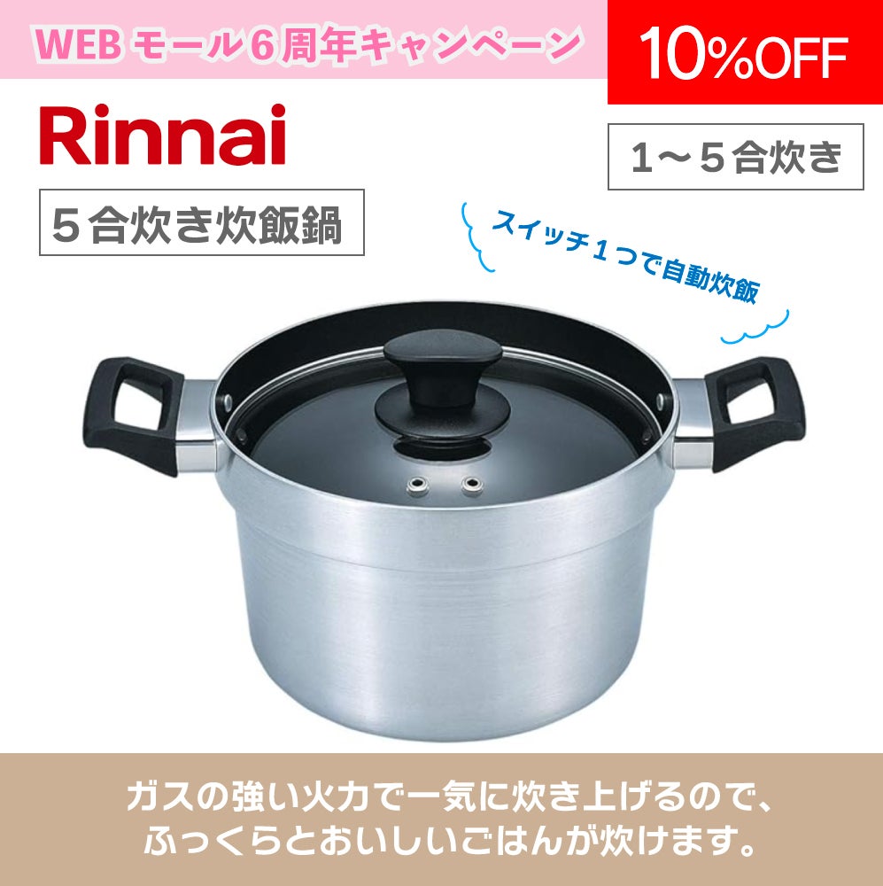 他の画像を見る 商品番号 G61706 【リンナイ】炊飯鍋(5合炊き) RTR-500D キャンペーン対象 メーカー希望小売価格 ¥ 9,020 販売価格 ¥ 8,100 税込 申し込み開始前です。 販売期間 2026/04/01 9:00 〜 2026/06/30 17:00
