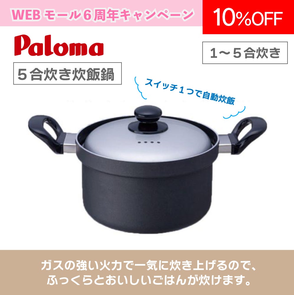 他の画像を見る 商品番号 G61704 【パロマ】炊飯鍋(5合炊き) PRN-52 キャンペーン対象 メーカー希望小売価格 ¥ 6,490 販売価格 ¥ 5,800 税込 申し込み開始前です。 販売期間 2026/04/01 9:00 〜 2026/06/30 17:00